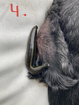 Jaspers Blut-Ohr wird mit Blutegeln erfolgreich behandelt